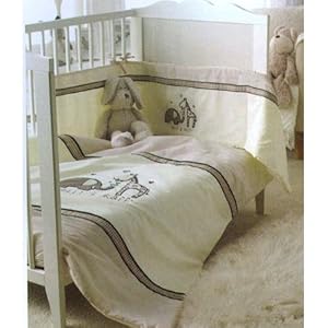 Lovely cot bedding set in natural colours featuring the best friends Ellie & Raff.